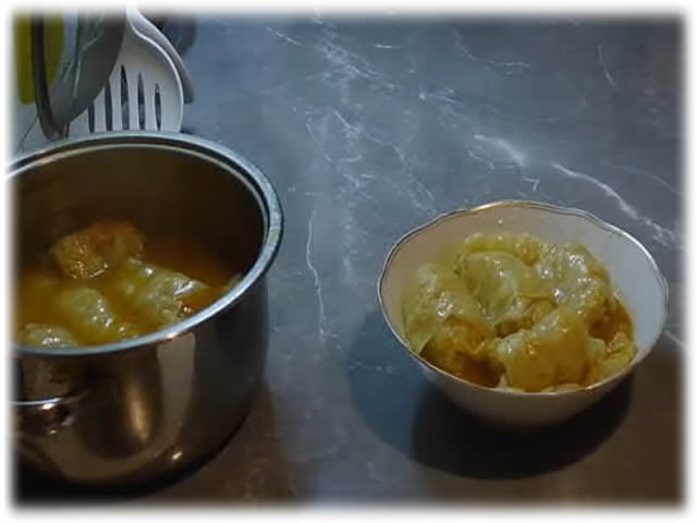 U ovom receptu je upotrebljeno: 16 listova kupusa, 200 grama pirinča, 200 grama praziluka, 200 grama crnog luka, 100 grama šargarepe, sasvim malo susama i začini po želji i ukusu.