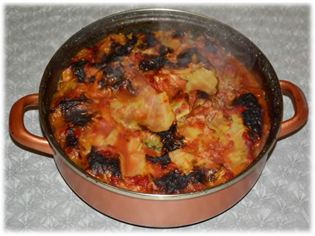 Prvo zagrijati rernu na 250 stepeni pa smanjiti na 180 i peći oko 90 minuta da se sarma fino upihtija.