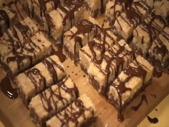 Ovaj svetli deo premazati preko tamnog i ostaviti u frižider da se stegne oko 2-3 sata. Seći štangle pa po želji preliti otopljenom posnom čokoladom ili posuti kokosom.