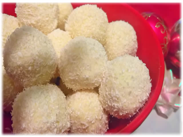 Bele bombice sa cokoladom prelepog ukusa.Priprema je jednostavna i od samo cetri sastojka