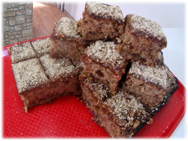 Prohlađen kolač premazati bilo kojim džemom i posipati mlevenim orasima.