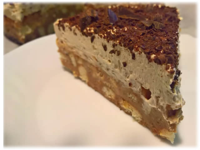 Kolc sa cajnim koluticima, kikirikijem, karamelom, kafom, odusevice vas svojim neobicnim ukiusom,Kolac mozete premazati slagom i sastrane i dobicete neobicnu i lepu torticu.