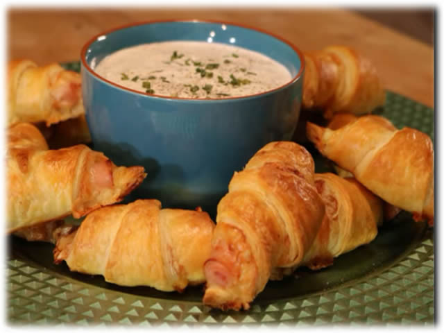 Šunka sir kiflice od lisnatog tijesta + fini umak. Mi ćemo ovo raditi za proslavu nove godine, mislim da bi i vama to bila odlična i jednostavna ideja.
