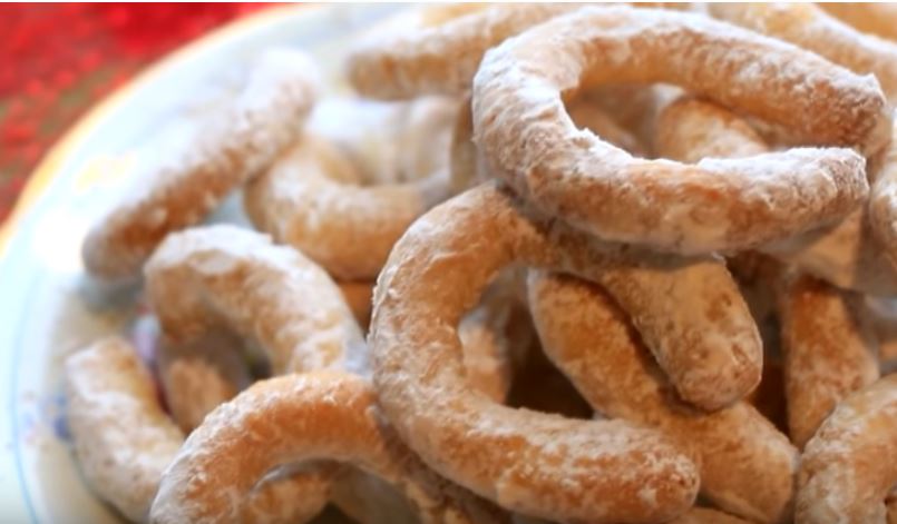 Ne treba da stoji, odmah prebacite na radnu površinu, uz malo brašna (da se ne lepi) napravite valjak, ja podelim na dva dela. Secite male komade, rolajući po stolu ili između dlanova pravite male valjke i presavijte u oblik potkovice. Složite na pek papir i pecite u vec zagrejanoj rerni na 180 stepeni oko 25 minuta ili dok ne vidite da su dobile zlatnu boju. Uvaljajte ih u prah šećer ili čokoladu. Uživajte u odličnom ukusu.