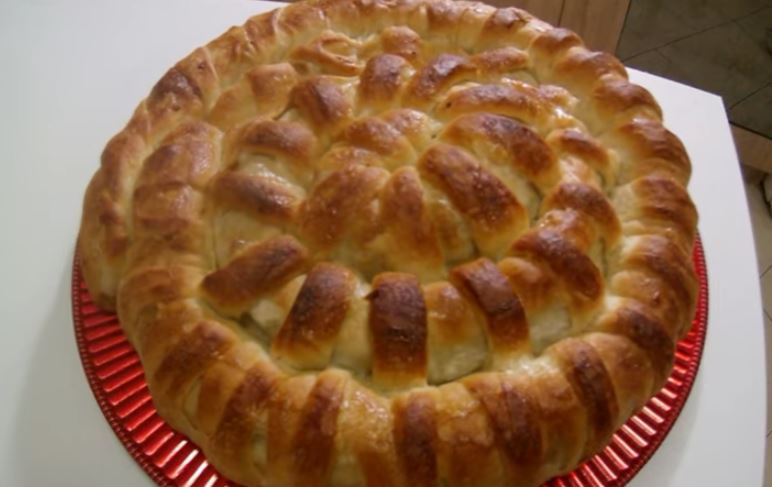 Vodu dodajete po potrebi od 300-350ml.da bi ste zamesili testo srednje čvrstine.Testo ostavite da nadođe a zatim podelite na 2 jufke.Na pouljanoj površini oklagijom razvucite koru (kao na video receptu).