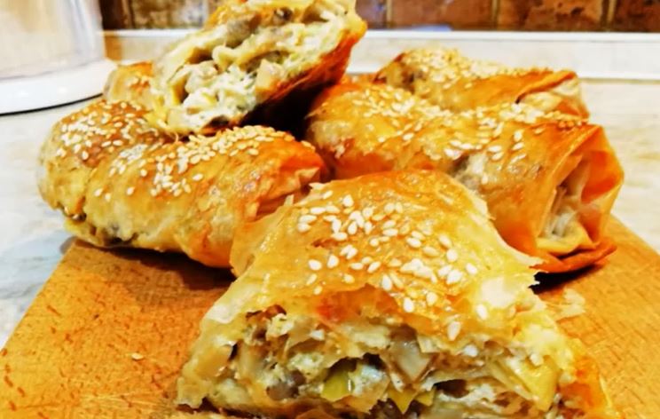 Dobrodošli u Ljubinu kuhinjicu, nadam se da vam je lepo kod nas. Mi se baš trudimo da vas ugostimo na najbolji način. Danas za vas pripremamo veoma jednostavne pitice punjene šampinjonima, prazilukom i kiselom pavlakom. Koriste se gotove kupovne tanke kore i zato je potrebno veoma malo vremena za pripremu ovih divnih pitica.