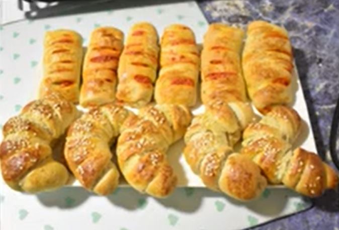 U mikser ubacite brasno, nadosao kvasac, ulje,pavlaku i zamesite testo. Ostavite ga 10 min.Zatim podelite na dve jufke. Od jedne napravite kiflice. Od druge isteglite oklagijom testo, pa isecite na kocke. Svaku kocku zasecite sa jedne strane, sa druge filujte i preklopite. Premazite zumancetom, posolite,i stavite susam. Ostavite ih da odstoje jos nekih 10min.Pecite na 180 stepeni 25-30 min.