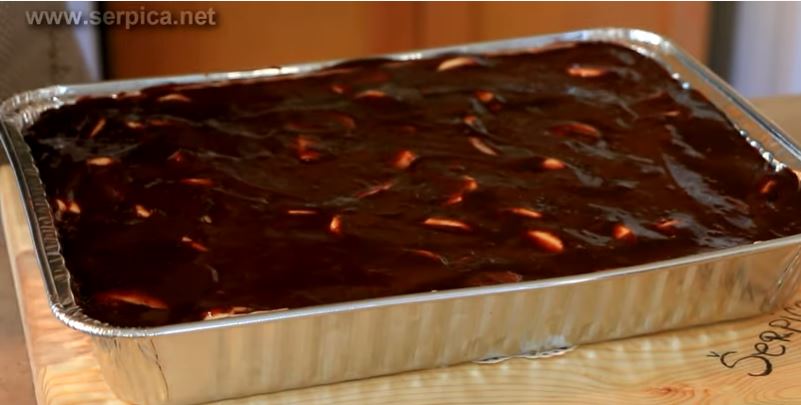 Izmesajte plazmu, maslac, mleko, neskvik pa napravite koricu na tacni ili u manjoj tepsiji.
