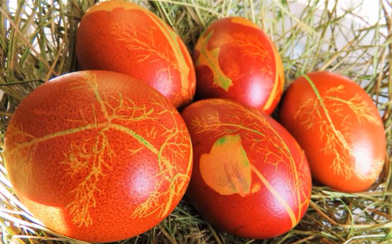 Bojanje Jaja u Ljusci Luka s Otiskom Bilja i Boje/Dying Eggs with Onion Skins Flowers and Color