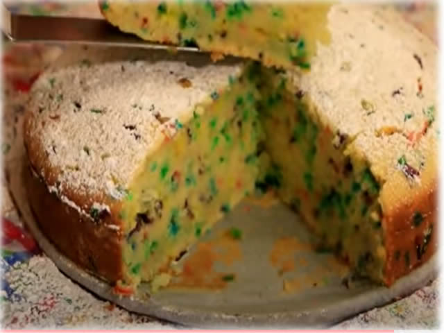 Umutite jaja i secer, umesajte sve ostale sastojke osim sarenih mrvica. Njih umesajte na kraju.