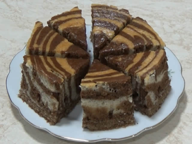 Sipati šećer, vanilin šećer, ulje i vodu i mešati dok se ne sjedini. Pomešati prašak za pecivo sa brašnom. Postepeno dodavati u smesu i mutiti. Smesu podeliti na dva dela. U jedan deo sipati kakao prah i dobro izmešati. U podmazan pleh (okrugli, prečnika 34 cm) sipati po tri supene kašike smese. Sipati prvo braon smesu u centar, pa belu smesu opet u centar i tako ponavljati do kraja. Šarena smesa se razliva od centra ka rubovima. Kolač staviti u rernu zagrejanu na 180 stepeni i peći 15-20 minuta.