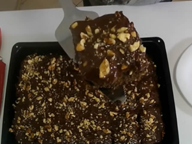Preko ispečenog i ohlađenog kolača naneti džem pomešan sa 200gr. seckanih oraha.Zatim otopiti 150-200gr.crne čokolade pa preliti preko.I na kraju posipati seckanim orasima.