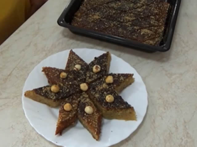 Pomešati griz, lešnik, brašno. Umutiti jaja. Dodati šećer i umutiti. Potom dodati mleko i nastaviti mućenje. Dodati i ulje i nastaviti mućenje. Zatim postepeno uz mućenje dodavati suvu smesu. Kad je sve umućeno, sipati u pleh obložen papirom za pečenje. Rernu zagrejati na 200 stepeni. Baklava se peče oko 30 minuta.