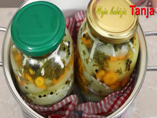 Zimnica barene paprike babura sa sircetom i uljem sa belim lukom sargerepom i persunom u tegli recept brz i lak za pripremu.