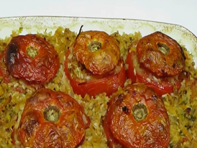 Sav fil pripremite u tiganju,napunite paradajze nalite vodom i na 200c zapecite u rerni 20-25min.da bi se pirinač skuvao i sve lepo zapeklo.