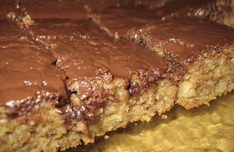 Čokoladu sa uljem otopimo na pari i premažemo preko vrućeg, pečenog kolača, seckamo na kockice, jedemo toplo ili hladno. No, ako preživi da se ohladi, ukusnije je tako.