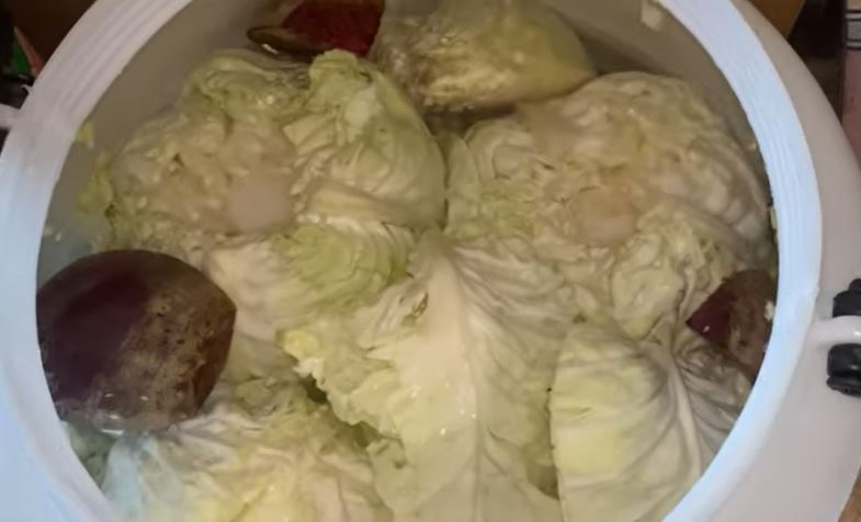 U udubljenje staviti so. Glavice kupusa poredjati u bure, zatvoriti i ostaviti da prenoći. Sutradan ga preliti. I dobro zatvoriti. Nakon 12-14 dana kupus je spreman za upotrebu.