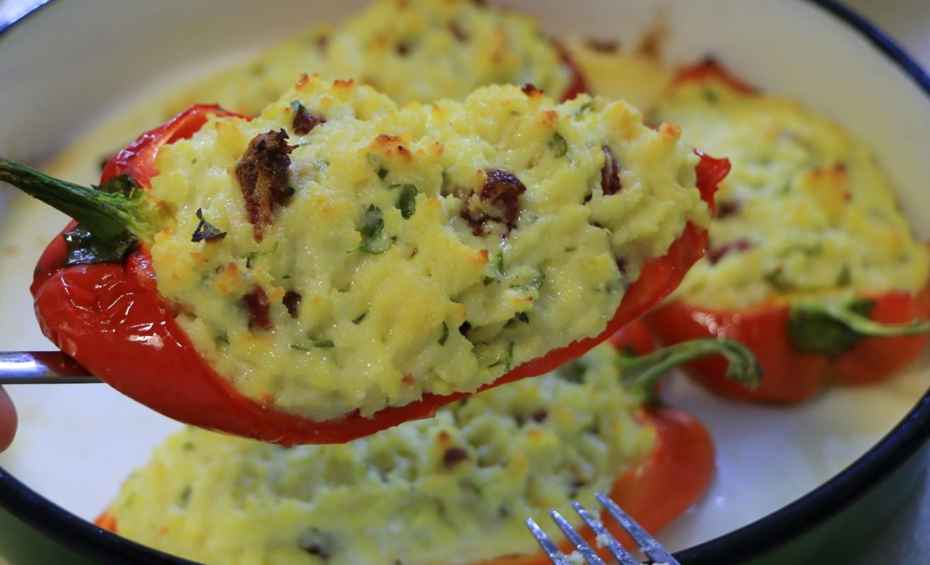 Punjene paprike iz rerne sa hlebom i sirom.