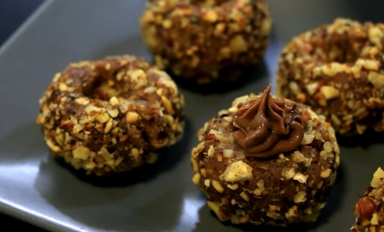 Izmešati u predhodno rastopljenoj smesi i ostaviti da se ohladi. Praviti kuglice i uvaljati u krupno iseckan, pečeni lešnik. Na sredini napraviti udubljenje.