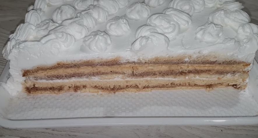 Ređati kora, čokoladno mleko, fil od plazme, šlag, kora, čokoladno mleko, fil od plazme, šlag, kora, čokoladno mleko, fil od plazme, dekorisati šlagom.