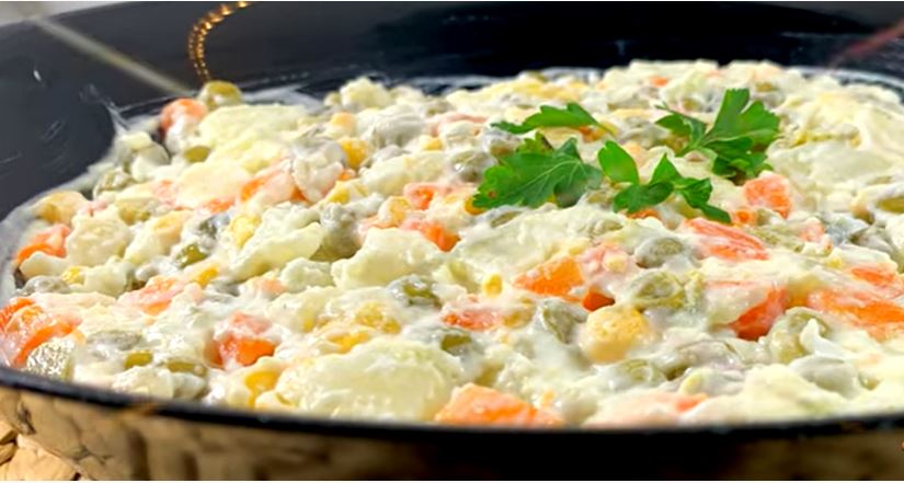 Ne zaobilazna salata na svim slavama i proslavama – Ruska salata. Idelan prilog uz predejela i glavan jela, na svim svecanim trpezama.