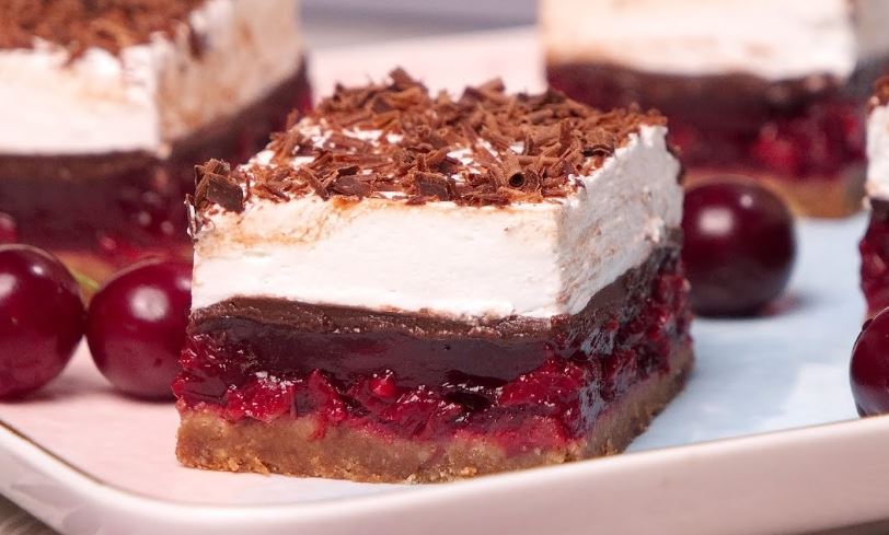 Fantastična kombinacija višanja i čokolade zaokružena mekom korom od keksa i slojem slatke pavlake.