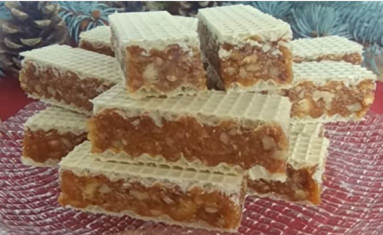 Dodati pekmez i maslac. Miješamo da se sjedini. Sad dodajemo orahe i keks.