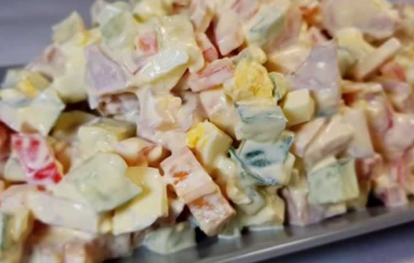 KUJNA | January 9, 2021 Ukusna salata, sigurno ćete uživati. Više nikada nećete spremati nijednu drugu. Sastojci: 1 slatka paprika 3 jaja 1 svježeg krastavca 200 grama šunke soli po ukusu majonez Detalje pripreme pogledajte u videu: Turska lepinja gotova za 14 minuta – topi se u ustima Recept za super salatu od kukuruza šećerca, luka, mirođije