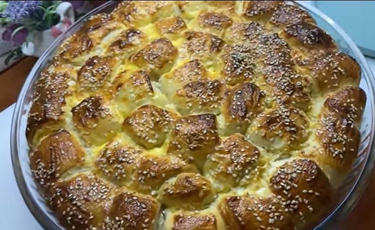 Kvasac aktivirati sa svim sastojcima. Dodavati postepeno brašno i mešati kašikom. Sjediniti i ostaviti da naraste oko pola sata. Testo treba biti izuzetno mekano zatim iseći na četiri dela. Svaki deo razvući uz dodavanje otopljenog putera. Posuti sirom pa uviti i iseći na manje delove. Te delove stavljati u tepsiju. Premazati pavlakom i žumancem. Posuti susamom i peći na 180 stepeni 25-30 minuta. Prijatno!