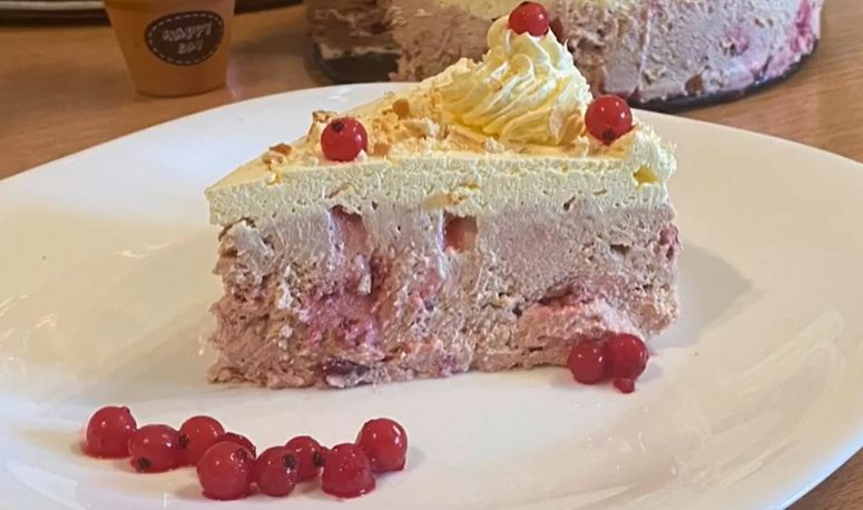Potrebni sastojci: 500gr mlevenog plazma keksa, 400gr kisele pavlake, 400 ml slatke pavlake, 300gr smrznutog crvenog voća,150gr prah šećera, 2 kesice šlag kreme.