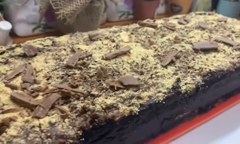 Čokoladu otopiti. Margarin izmiksirati i dodati prah šećer. Vodu zagrejati do tačke ključanja pa dodati orahe. Sjediniti margarin i orahe i dodati otopljenu čokoladu. Zatim taj fil premazivati preko naredjanog keksa. Ponavljati proces dok ima materijala. Dekorisati po ukusu. Prijatno!