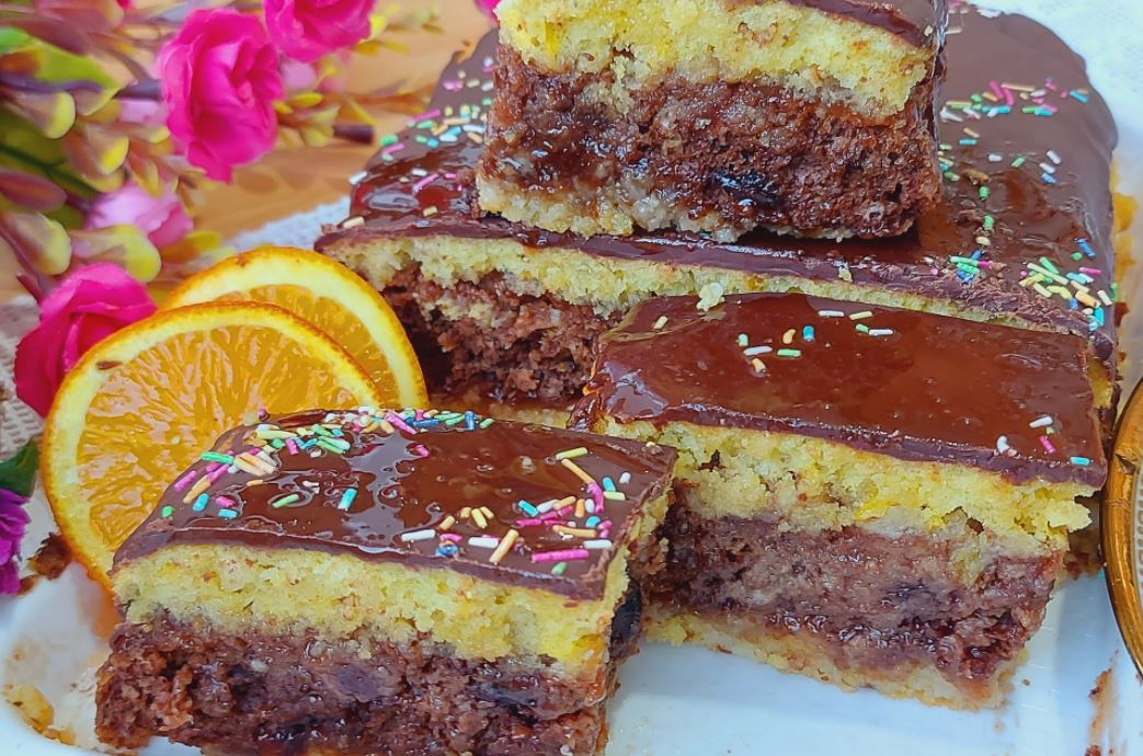 Na njega dodati tamni deo (njega ne seći) preliti sokom i premazati džemom i staviti drugi svetli deo. Dobro pritisnuti rukama. Preliti čokoladom i ostaviti u frižider par sati..