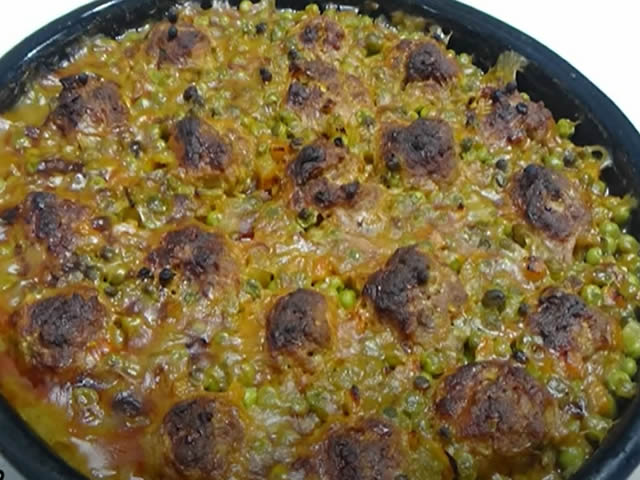 Skuvani grašak začiniti preliti preko ćufta i zapeći u rerni na 200c/20min.