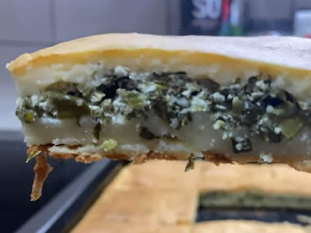 Troslojna pita: brza pita bez kora sa sirom, spanaćem i lukom
