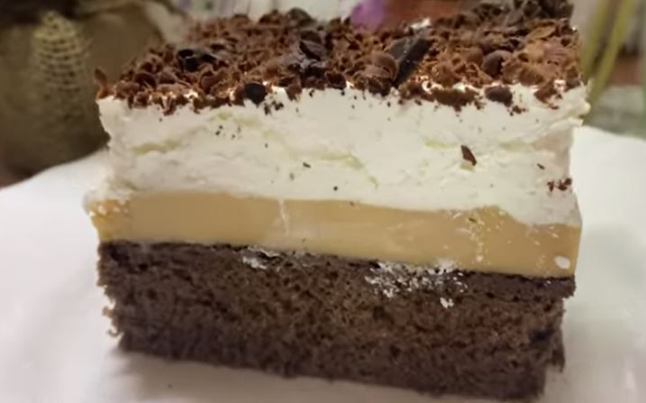 Izmiksirati belanca, dodati šećer, zatim žumanca, vodu, mleko i ulje. Nastaviti sa miksiranjem pa dodati brašno, kakao i prašak za pecivo. Presuti u pleh za pečenje i peći na 200 stepeni oko 15-20 minuta. U vruće mleko dodati puding,šećer, vanilin šećer i maslac i kuvati dok se ne zgusne. Preko ohladjenog biskvita staviti fil. Odozgo staviti izmiksiranu slatku pavlaku u koju smo dodali jedan aktivirani želatin. Dekorisati po želji. Prijatno!