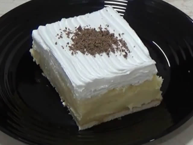 U pleh 20 x 30 cm poređati keks. Sipati fil preko keksa. Ostaviti da se dobro ohladi. Umutiti krem šlag sa mlekom. Premazati šlag preko ohlađenog kolača.