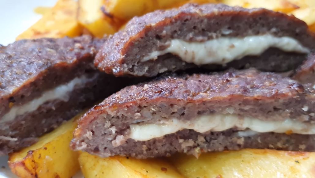 Pljeskavice punjene sirom i pekarski krompir, sve zajedno.