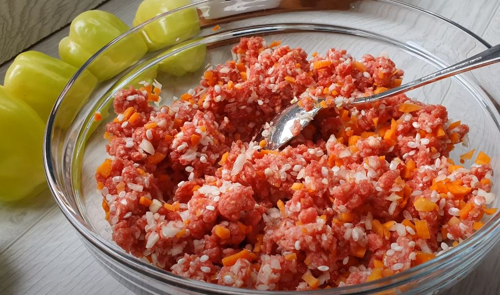 U posudu staviti 700 gr mljevenog junećeg mesa i dodati : 7 kašika riže, 1 veću glavicu luka i 1 mrkvu, sitno sjeckano. Izmiješati. Dodati 1 kašikicu suhog peršina, 1 čehno bijelog luka, pola kašikice bibera i po jednu kašikicu soli i mješavine začina – opet promiješati. Doliti 1 kašiku ulja i 100 ml vode – sve dobro izmiješati, najbolje rukom