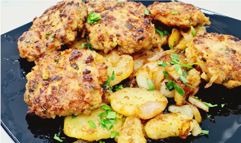 U ULJE U KOM SU SE POLPETE PRZILE ISPRZITI 1 GLAVICU LUKA KRUPNO ISECENU PA DODATI 4-5 POLU OBARENA KROMPIRA ISECENA NA KOLUTOVE,DODATI SUVI ZACIN BIBER SO PO UKUSU