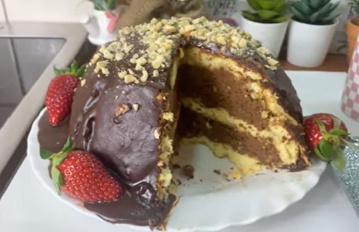 300ml pavlake kuvati do tačke ključanja pa dodati čokoladu i sjediniti. 200ml pavlake izmksirati, pa sjediniti sa čokoladom i pavlakom i dodati lešnike. Biskvit iseći poredjati po činiji i premazati sirupom. Filovati pa staviti biskvit. Odneti na hladjenje. Preliti glazurom i po ukusu ukrasiti. Prijatno!
