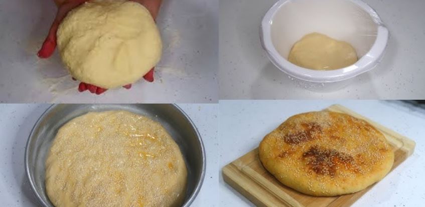 Ostavite 20min na toplom mestu, podmazite pleh uljem i pospite malo brašna (može i pek papir), stavite testo u pleh i malo ga prstima razvucite da ne bude previse debelo.
