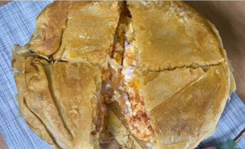 U nauljenu tepsiju poredjati kore pa početi sa dodavanjem nadeva sve dok imamo materijala. Peći na 180 stepeni 30-35min. Prijatno!
