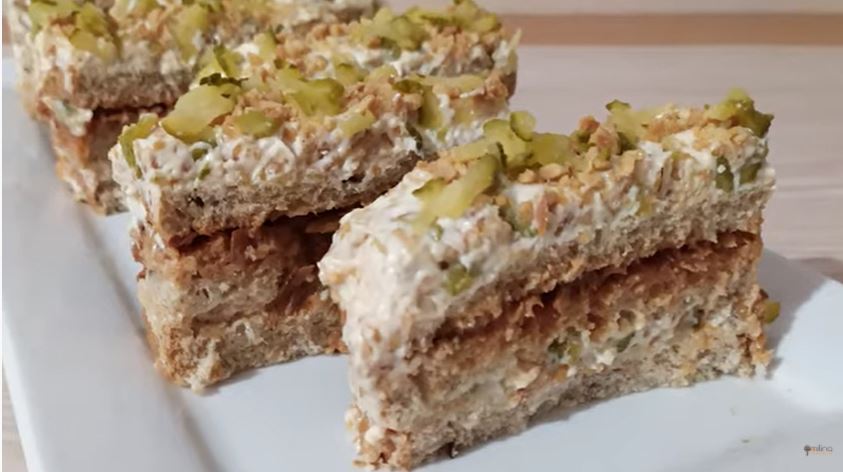 KUJNA,Posno | April 14, 2021 izvor:Emilina Kuhinja Sastojci: -Tost hleb -2 tune sa povrcem -1/2 posnog margarina -300g posnog majoneza -300g krupno mlevenog kikirikija 3-4 kisela krastavcica Detalje pripreme pogledajte u videu Čokoladna torta – Sočna, nežna, izdašna, kremasta, a posna. Lisnata pogača sa feta sirom – Vrlo jednostavna
