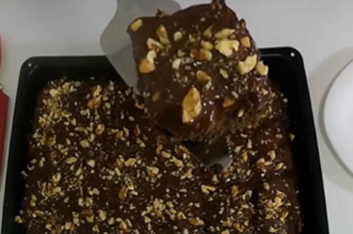 Preko ispečenog i ohlađenog kolača naneti džem pomešan sa 200gr. seckanih oraha.Zatim otopiti 150-200gr.crne čokolade pa preliti preko.I na kraju posipati seckanim orasima.