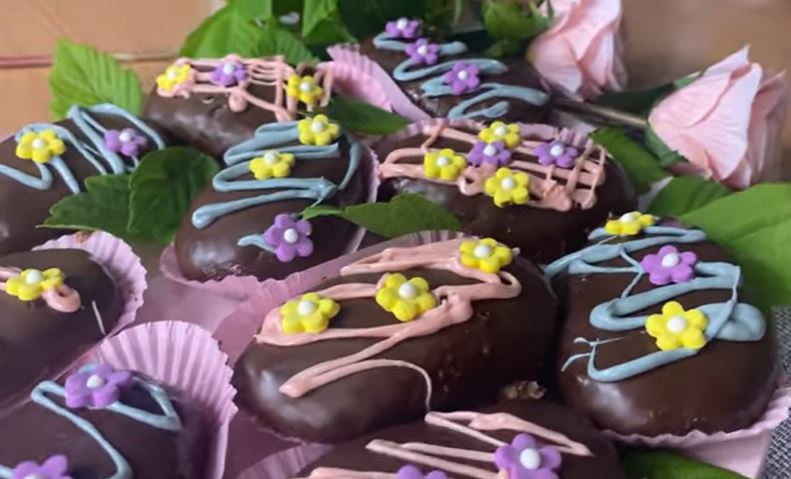 Ostaviti da se hlade. Otopiti crnu i belu čokoladu. Potapati kolače u otopljenu crnu čokoladu. Dekorisati po želji. Prijatno!