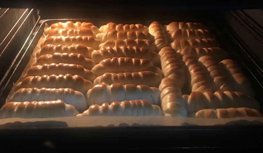 U međuvremenu zagrijati pećnicu na 250 stepeni i pred pečenje premazati svaku kiflu sa umućenim jajetom sa malo soli.
