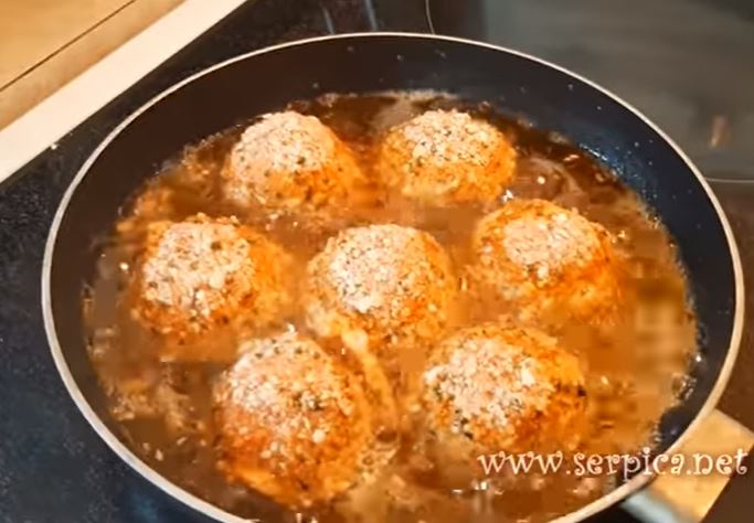 Napravite loptice, uvaljajte u umuceno jaje i hlebne mrvice.