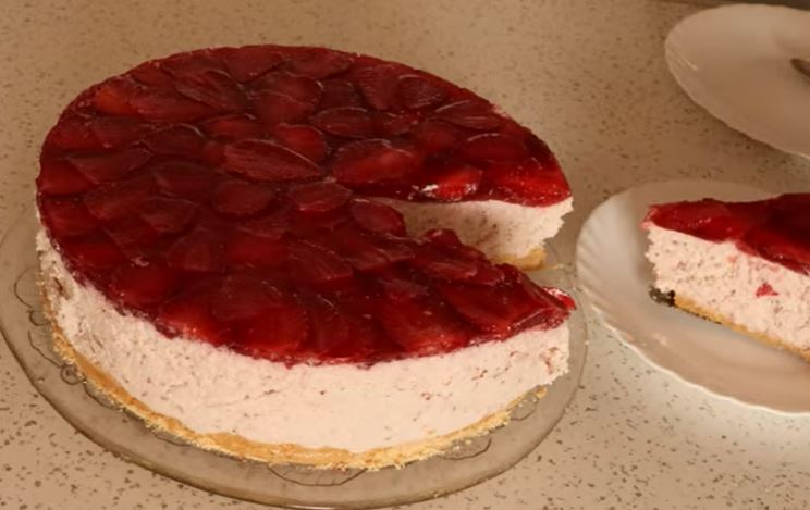 kada skuvamo jagode sa vodom i šećerom sok koristimo za završni sloj a komadiće jagoda za ovaj fil