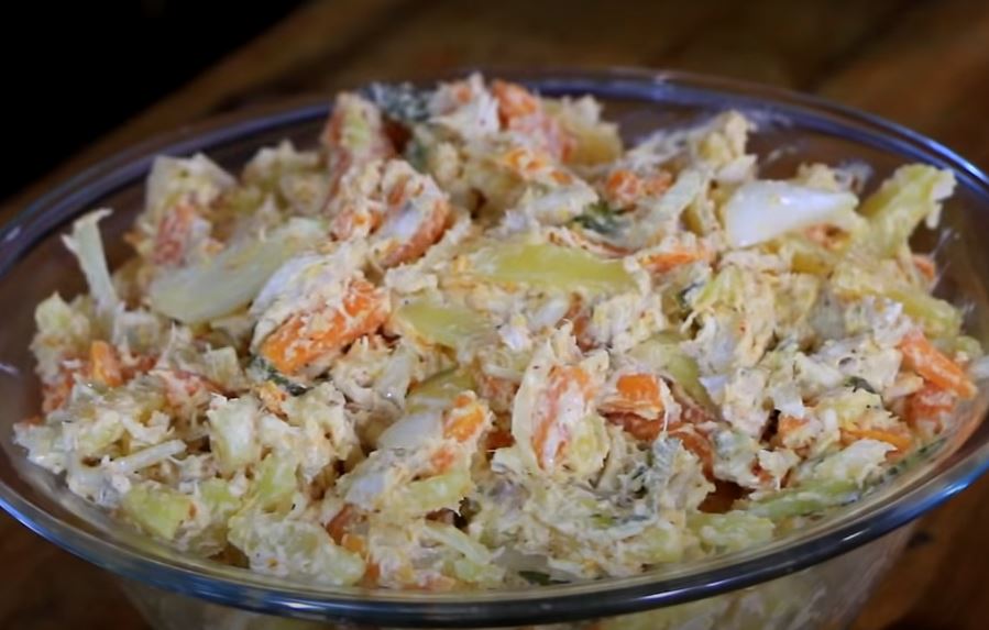 Krompir salata sa pilecim mesom bez majoneza.