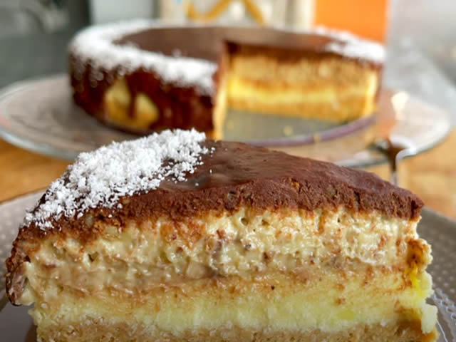 Ukoliko Vam treba brza kremasta torta, bez pečenja, onda je ovo pravi recept za Vas. Predivan spoj pudinga sa plazmom, orasima i kokosom, oduseviće sve. Torta je prava mala bombica.